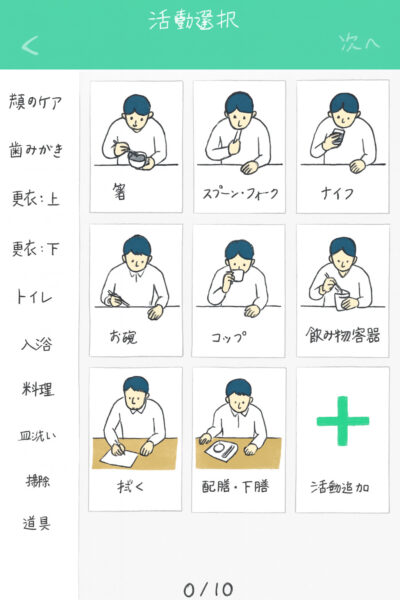 例)「まずは身の回りのこと(洗顔・食事)」「次に家事」など